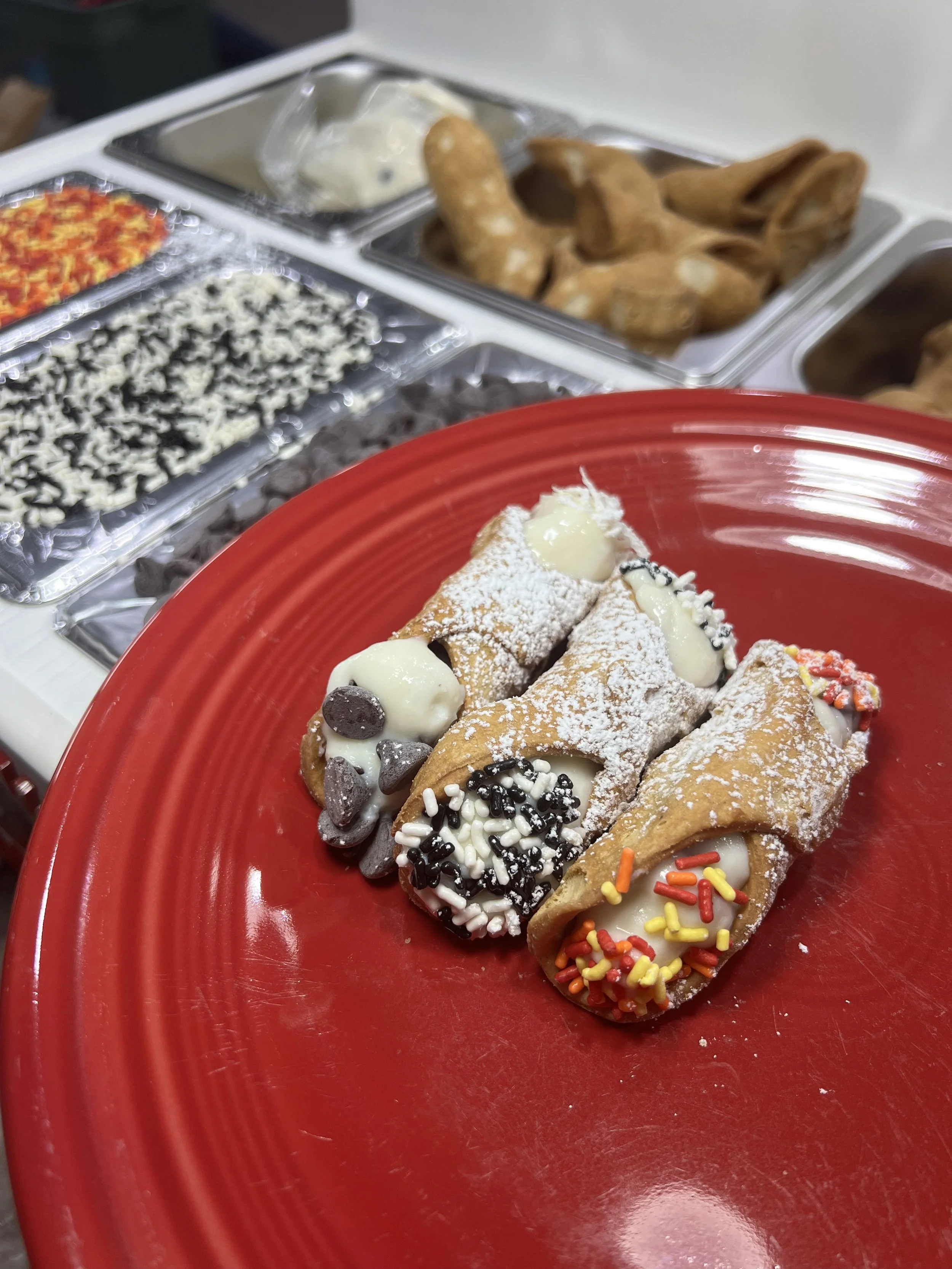 Your guest will enjoy freshly filled cannolis made right in front of them by our friendly cannoli curator. Starts with our chocolate chip ricotta filling and your choice of 3 toppings: